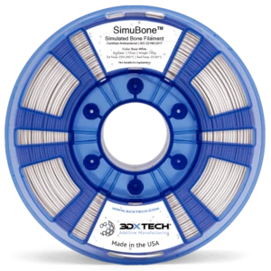 Le filament de modélisation osseuse SimuBone® vous permet d’imprimer des modèles osseux réalistes pour un usage clinique et éducatif. Notre formulation est basée sur un PLA facile à imprimer associé à des additifs spécialisés qui donnent à votre pièce l’aspect et la sensation d’un véritable os. Notre filament est facile à imprimer sur pratiquement toutes les imprimantes 3D et se marie parfaitement avec notre support hydrosoluble AquaTek™ X1 pour l’impression de pièces complexes avec des imprimantes à double extrudeur.