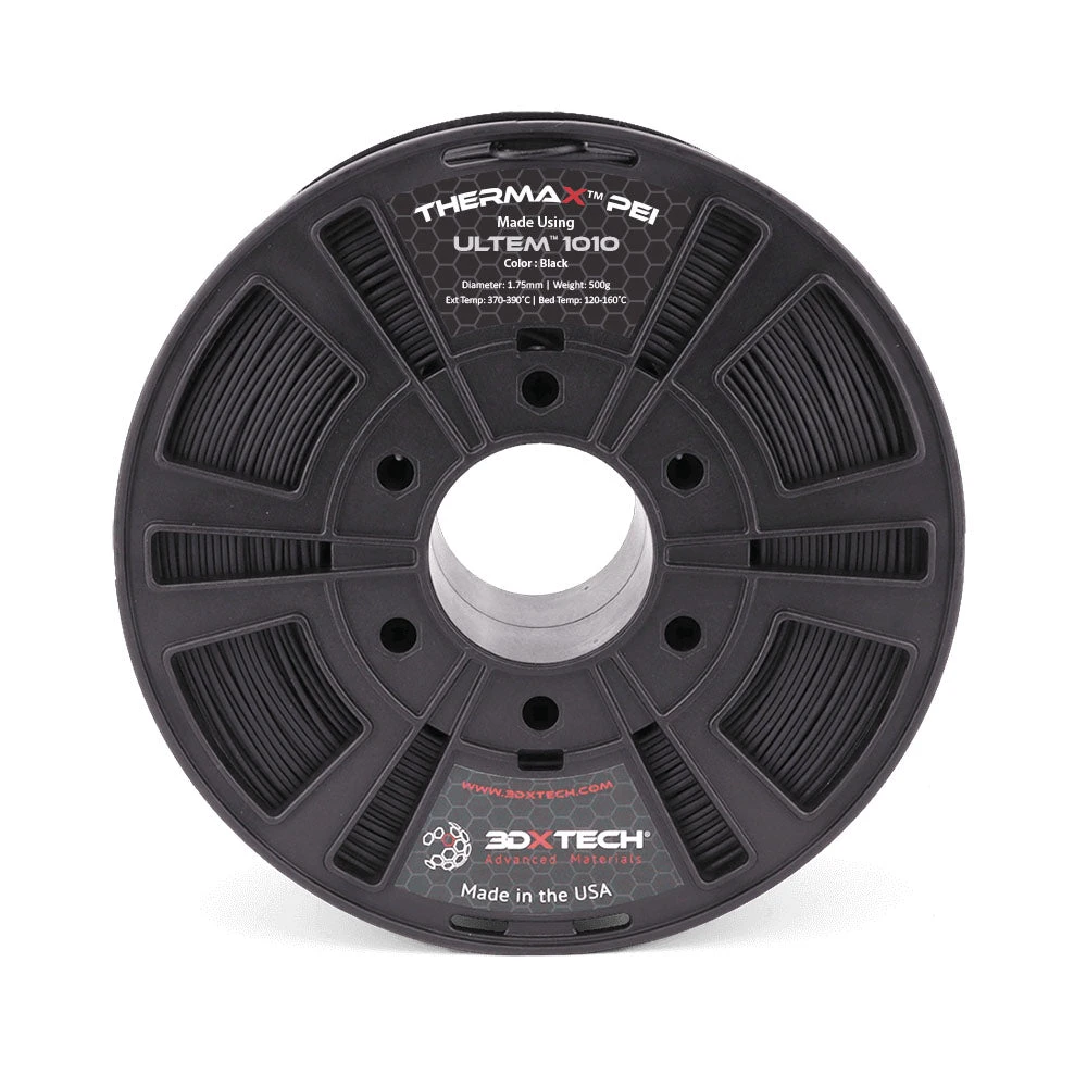 Ce filament d’impression 3D ultra-performant est fabriqué en utilisant la résine ULTEM™ 1010 PEI (polyéther imide). Le PEI est un polymère amorphe de haute performance qui combine d’excellentes propriétés thermiques, une stabilité dimensionnelle exceptionnelle, une ignifugation inhérente et une bonne résistance chimique. Les filaments fabriqués à l’aide de la résine ULTEM™ 1010 offrent la possibilité de créer des pièces avec d’excellentes propriétés à des températures élevées grâce à une température de transition vitreuse (Tg) élevée de 217°C.