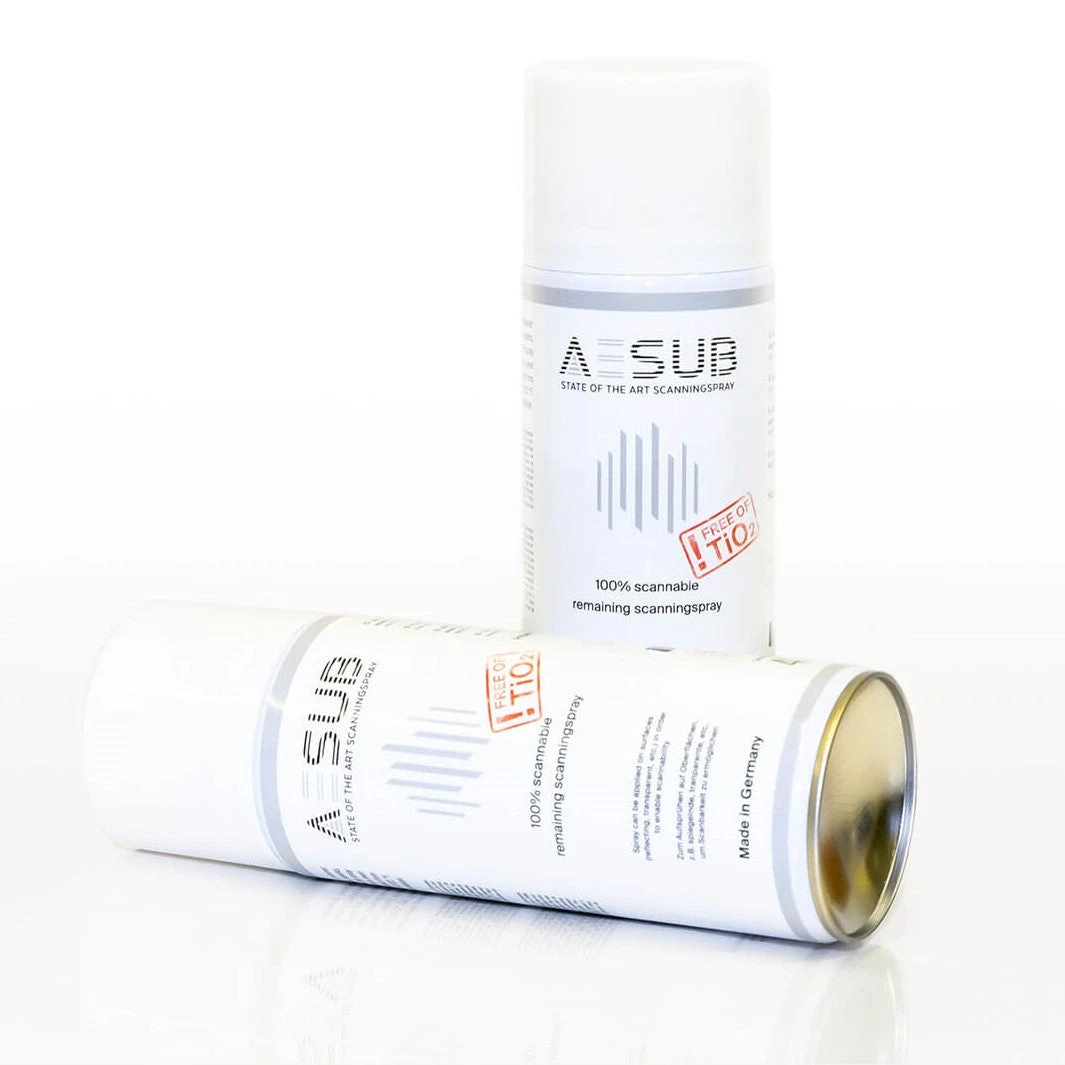AESUB blanc est le spray de balayage permanent de pointe. Il a été développé par des experts en numérisation 3D. Vous appliquez le spray sur des surfaces difficiles pour pouvoir les capturer avec un scanner optique. Après la numérisation, vous devez nettoyer l’objet car le spray ne s’évapore pas.