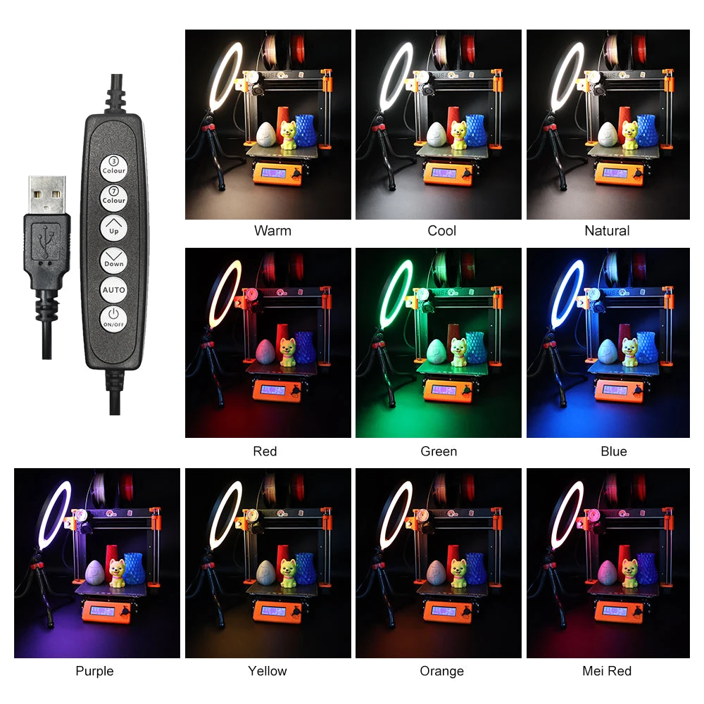 Anneau lumineux alimenté par USB : connectez simplement l’anneau lumineux LED à un chargeur portable avec le câble fourni pour commencer à l’utiliser. Fonctionne avec la plupart des appareils prenant en charge le port USB, comme un ordinateur, une power bank, un chargeur USB, un adaptateur secteur, etc. Changez de mode d’éclairage et ajustez les niveaux de luminosité pour trouver vos options préférées en quelques secondes.