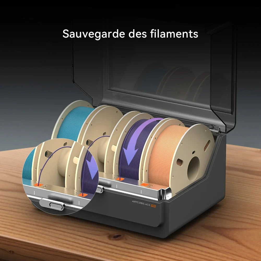 L’Anycubic Color Engine Pro optimise l’utilisation de chaque bobine de filament en passant automatiquement à la suivante, tant qu’elle est de la même couleur et du même matériau, pour rendre l’impression encore plus efficace.