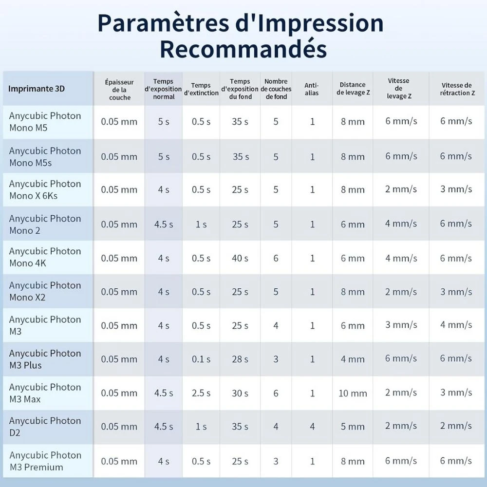 Cette résine donne aux pièces un rendu très détaillé et vraiment impressionnant. Pour obtenir un fini lisse et poli, il est conseillé d’appliquer plusieurs couches avant que la pièce ne durcisse.