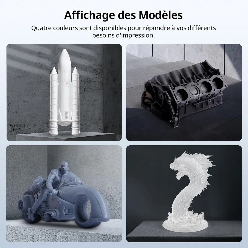 Cette résine permet de réduire considérablement le retrait volumique pendant le durcissement. De plus, sa grande fluidité aide à un durcissement rapide tout en limitant le retrait. C’est donc le choix idéal pour imprimer des modèles avec des détails fins, une texture soignée, et une finition lisse.