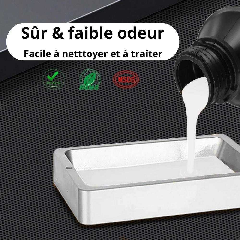 - Portez des gants et un masque lorsque vous utilisez la résine. En cas de contact avec la peau ou les yeux, rincez abondamment avec de l’eau.