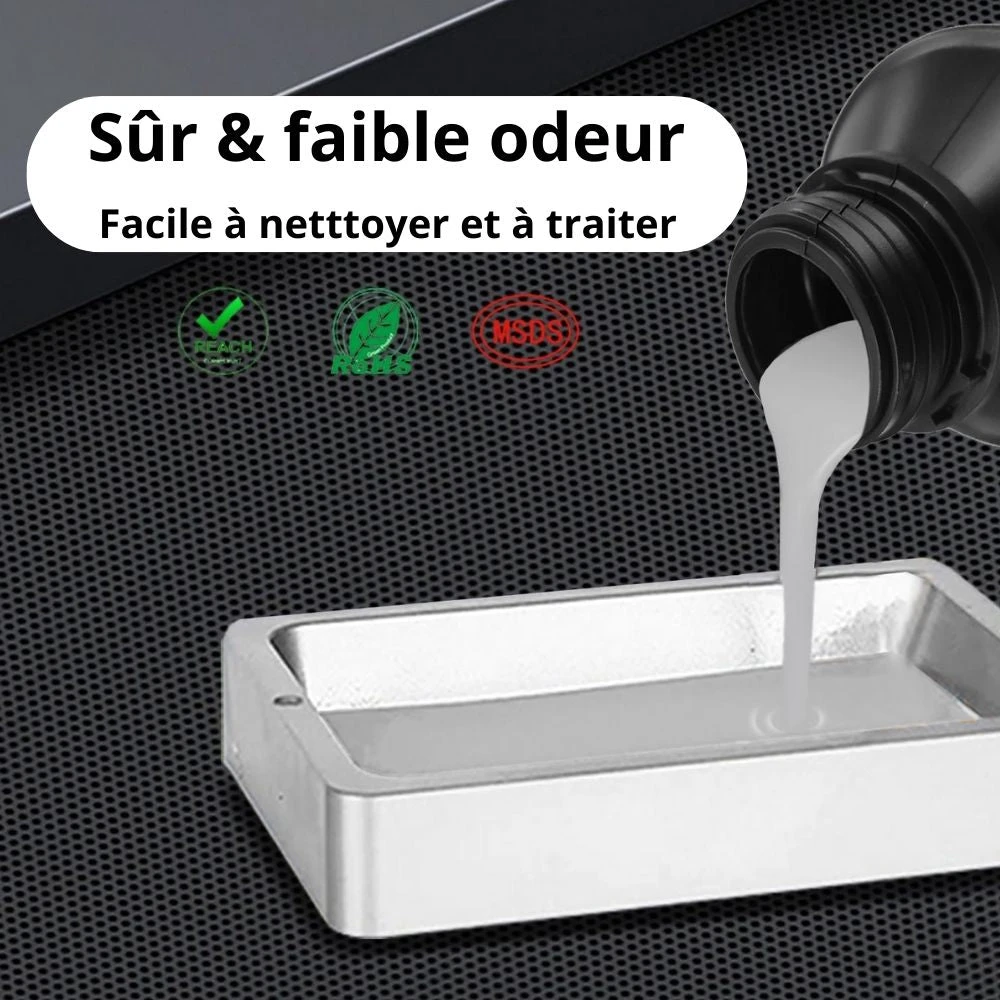 - Portez des gants et un masque lorsque vous utilisez la résine. En cas de contact avec la peau ou les yeux, rincez abondamment avec de l’eau.