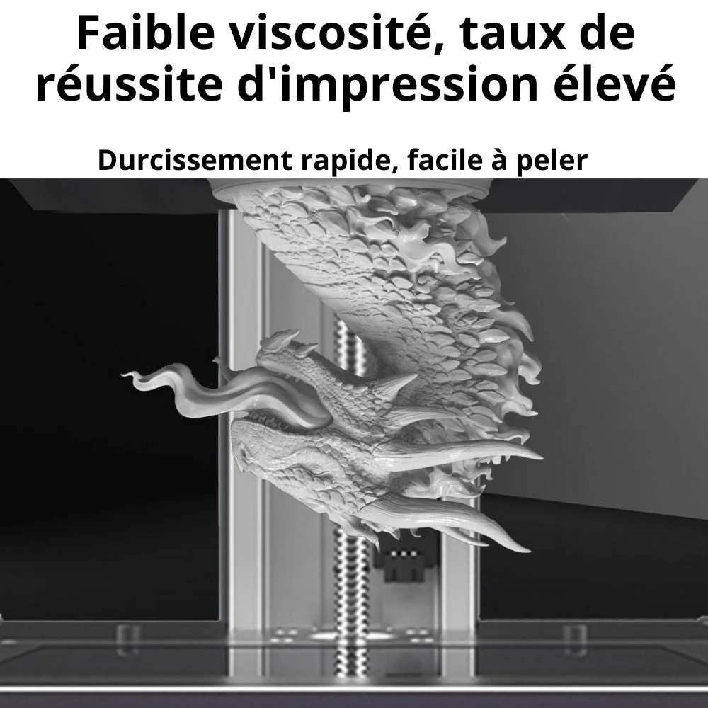 La résine ApexMaker pour imprimantes 3D fonctionne avec la plupart des imprimantes DLP/LCD et supporte même l’impression en 4K et 8K. Grâce à son excellente fluidité, le temps de durcissement est réduit, tout en assurant une précision d’environ ±0,1 mm.