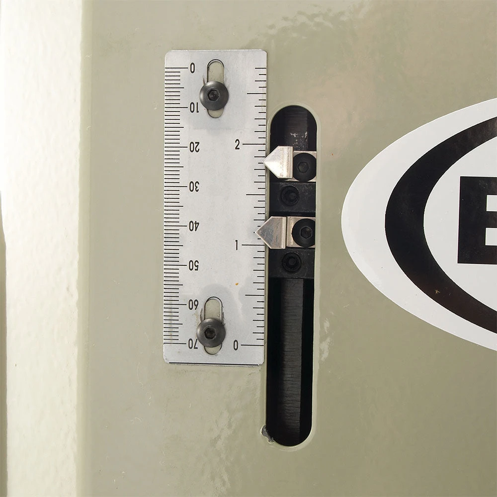 - Material hold-down with knurled handle enables you to quickly fine-tune and fit a given profile.
