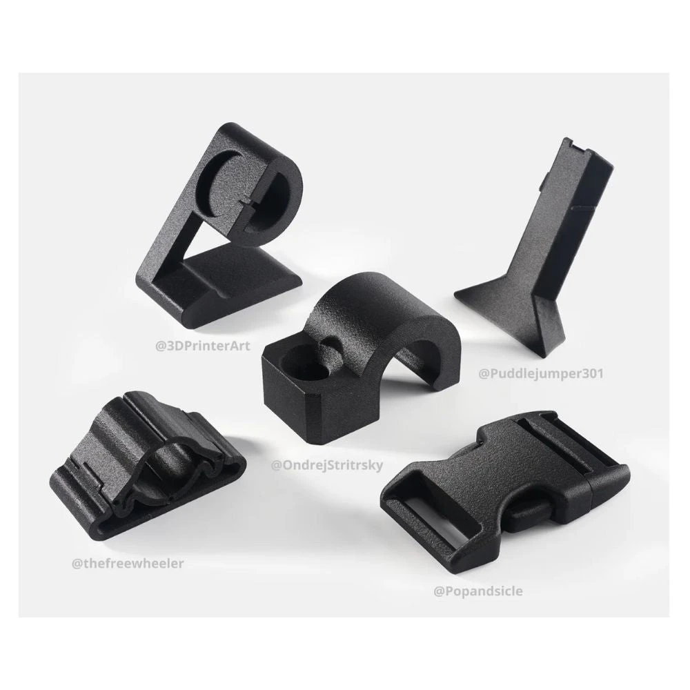 Le PAHT-CF est un composite de PA12 et de fibre de carbone, il hérite donc des avantages de faible absorption d’eau du PA12 et des hautes performances de la fibre de carbone. Il offre d’excellentes propriétés mécaniques et thermiques qui se maintiennent même lorsque le modèle est humide. La parfaite adhésion des couches et sa flexibilité en font le matériau de base idéal pour créer des pièces d’ingénierie comme les prototypes fonctionnels, les parties de machines, les moules…