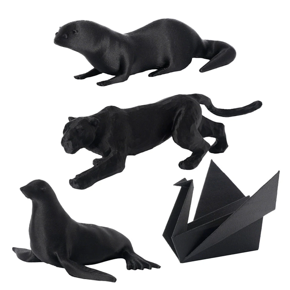 Les modèles imprimés en PETG-CF conservent l’apparence brillante du PETG tout en ayant l’aspect texturé délicat la fibre de carbone qui a également l’avantage, grâce à ses propriétés réflectives, de rendre les stratifications entre les couches quasi invisibles.