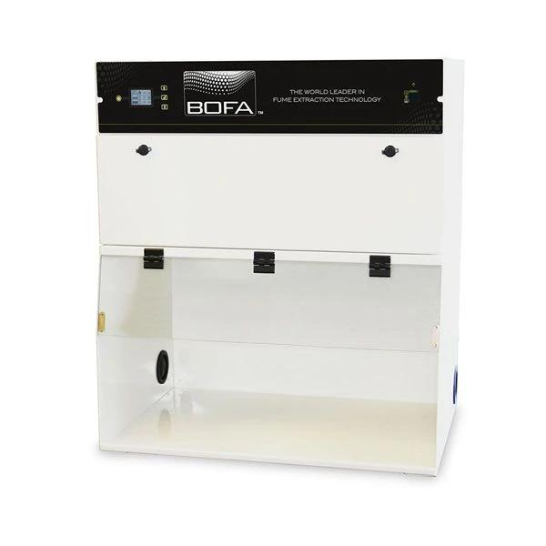 La gamme de systèmes d’extraction haut de gamme de BOFA combine une grande capacité de filtration avec des débits d’air et une pression élevés. Le système d’extraction à haut volume V 600 offre une protection contre les fumées nocives. Cette unité incorpore une filtration à 3 niveaux, un affichage de l’état du filtre et un silencieux intégré. Une solution de purification des fumées vraiment à la pointe de la technologie. Avec l’introduction du code de pratique HSG258, les enceintes partielles deviennent progressivement l’option préférée pour la protection des opérateurs contre les fumées générées par des processus tels que le brasage manuel, l’utilisation de solvants et d’autres processus qui produisent des fumées nocives. La sorbonne FumeCAB 600 de BOFA a été spécialement conçue pour aider les employeurs à se conformer à ces nouvelles réglementations. Cette armoire a été conçue pour fonctionner avec le système d’extraction V 600.