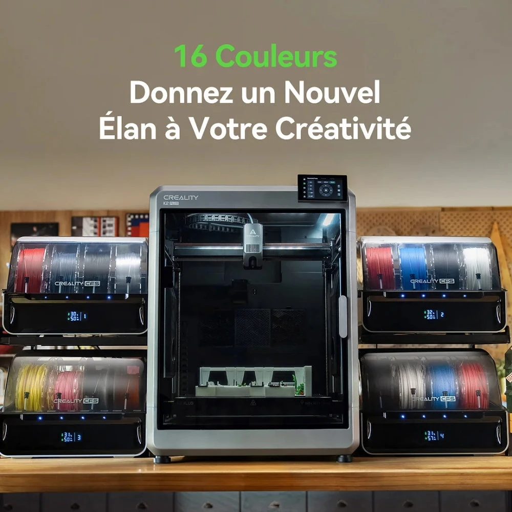 Le système Creality Filament System (CFS) est une solution intelligente et innovante pour la gestion de vos filaments 3D. Avec la combinaison de 4 CFS, il permet de stocker jusqu’à 16 couleurs tout en les protégeant de l’humidité, garantissant ainsi une qualité optimale.