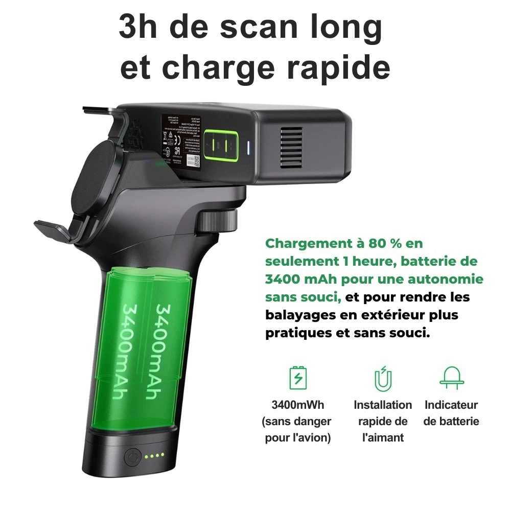 La batterie intégrée à la poignée Lite Bridge permet des sessions de numérisation prolongées, même pour les projets de grande envergure.