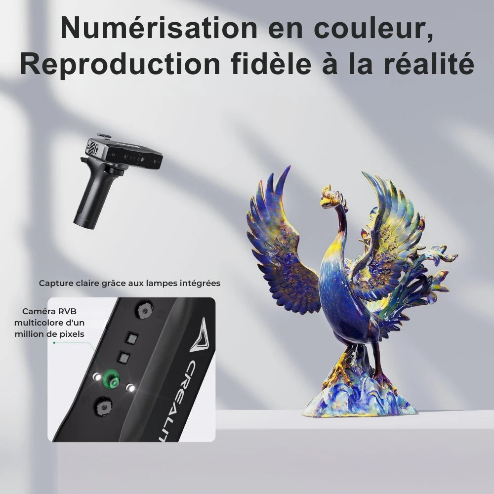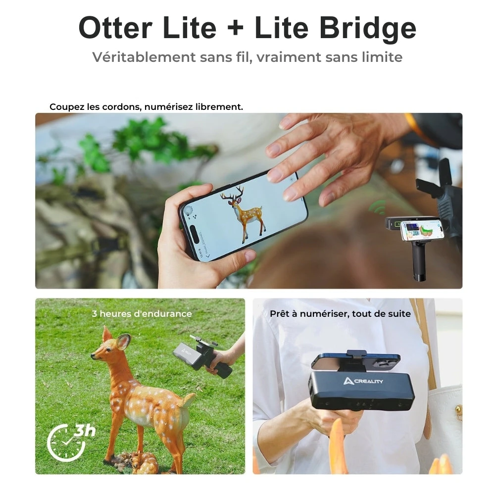 Le Creality Otter Lite est un scanner 3D compact et sans fil, pensé pour une numérisation rapide, précise et accessible.