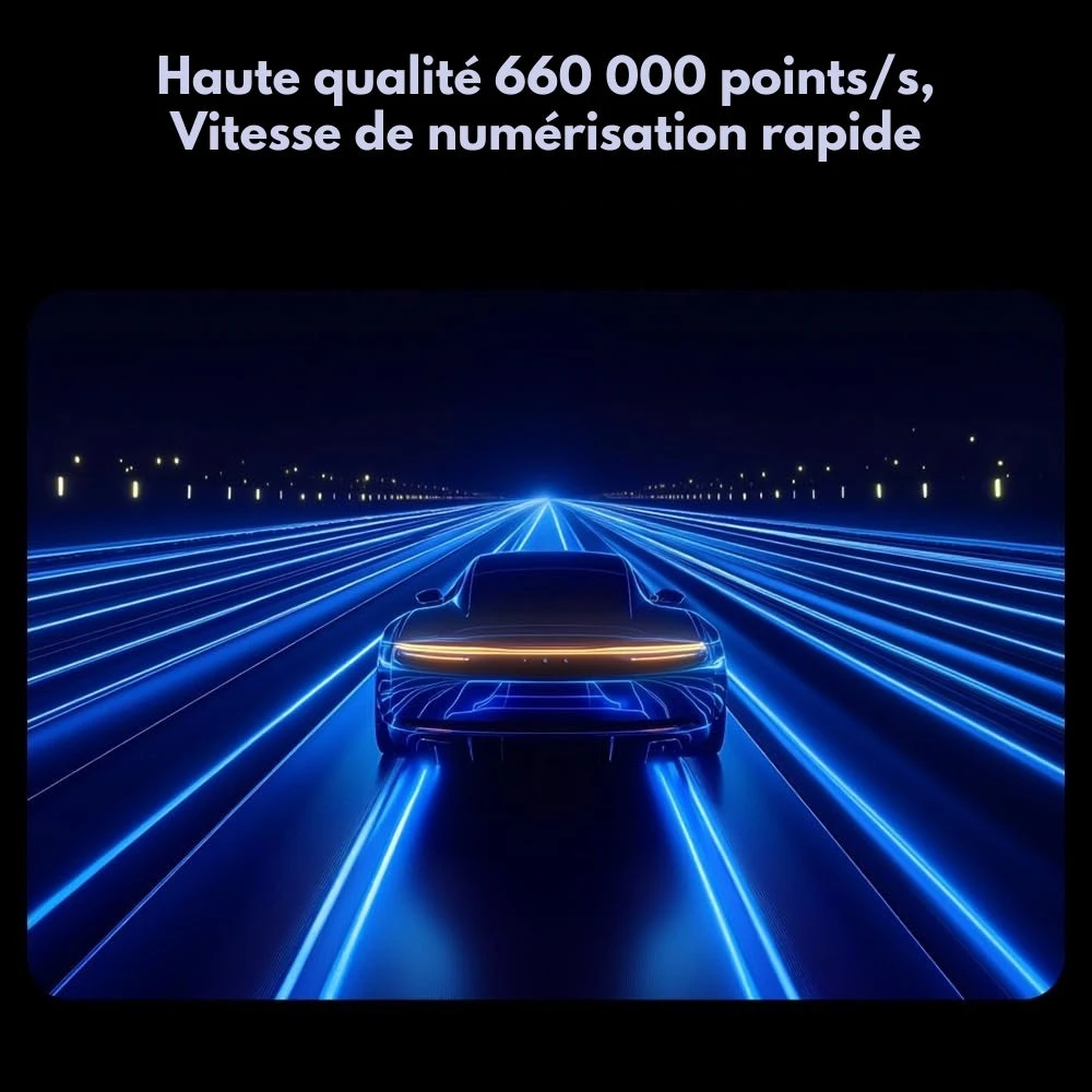 Sa vitesse de scan de 660 000 points/s est 2,4 fois celle du Raptor, la profondeur de champ est 1,8 fois plus grande que celle du Raptor, et la largeur est deux fois plus grande. Cela améliore considérablement l’efficacité du scan sans compromettre les détails.