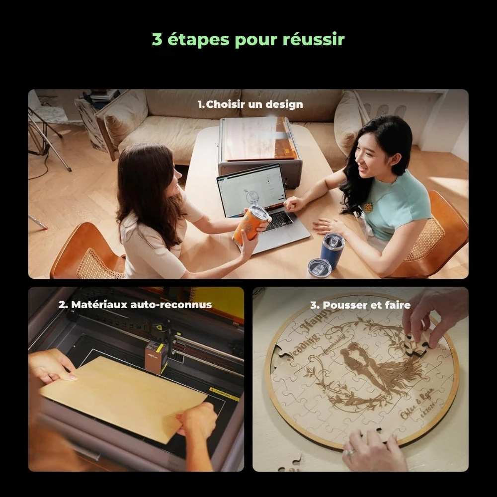 | Logiciel de gravure laser | LightBurn, LaserGRBL, Falcon Design Space |