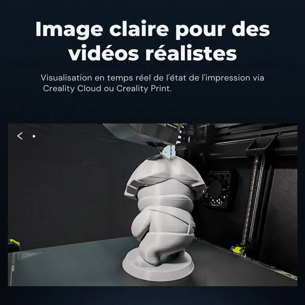 Compatible avec Creality Cloud, elle vous offre la possibilité de suivre vos projets à distance, où que vous soyez.