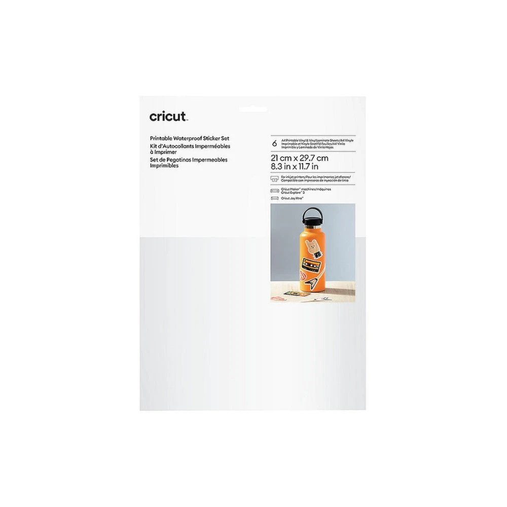 Cricut – Set de stickers imperméables et imprimables fond blanc – A4 (6 feuilles)