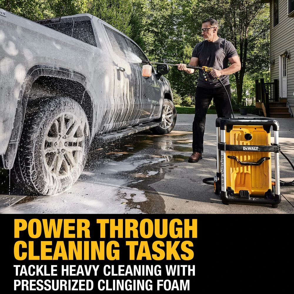 - Tackle heavy cleaning with pressurized clinging foam using the foam cannon accessory