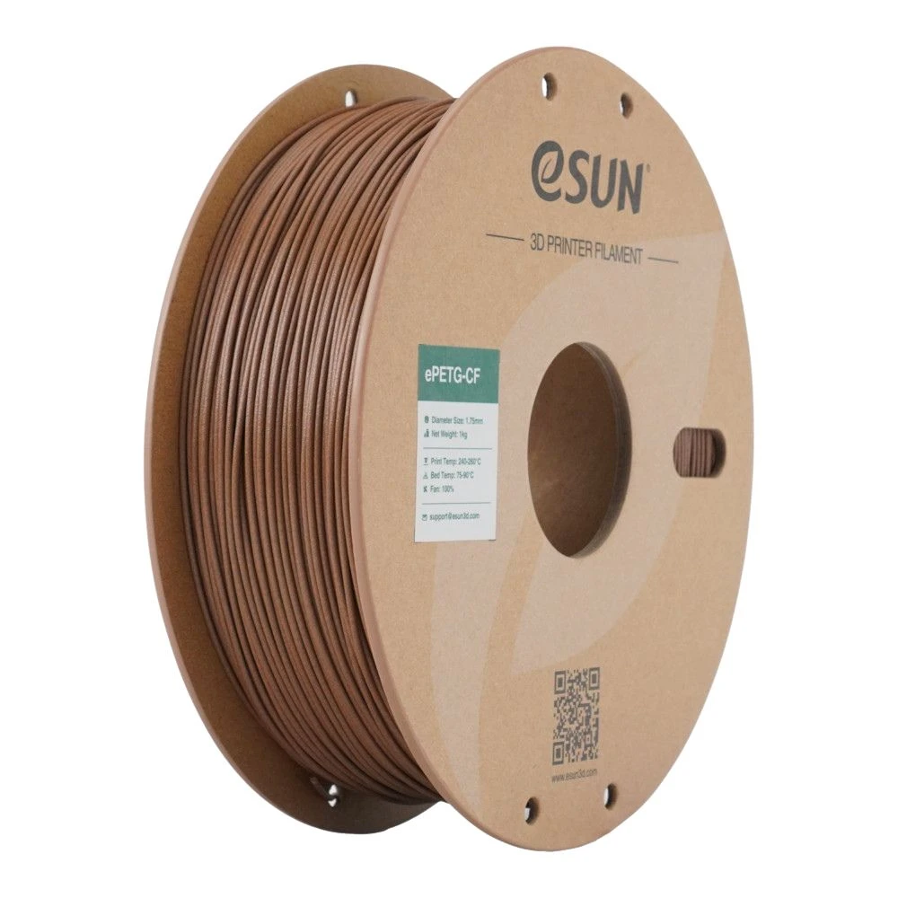 Le filament ePETG-CF d’eSUN est du PETG renforcé avec des fibres de carbone. Très rigide, très solide, il se démarque par sa texture mate unique, tout en résistant aux produits chimiques et en vieillissant très bien.