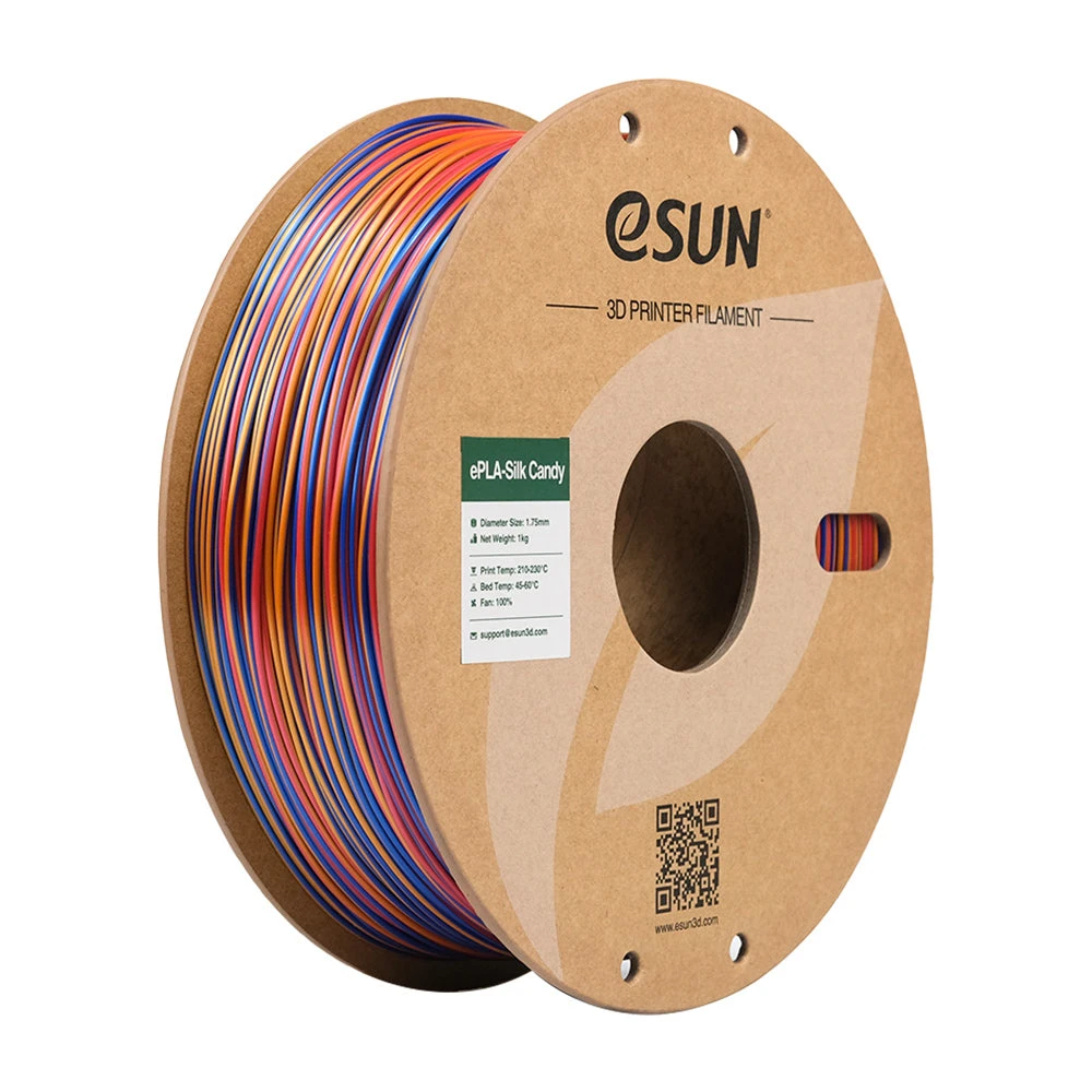 Le PLA eSilk est un PLA eSun modifié par l’ajout de matériaux à effet brillant qui lui donnent un aspect de surface soyeux. Cet effet a l’avantage de masquer les stratifications sur la pièce et donc d’obtenir un rendu visuel plus lisse. Il est par ailleurs similaire au PLA standard, avec de bonnes propriétés mécaniques, une grande résistance et toujours la même facilité d’impression. Il est respectueux de l’environnement et non toxique.