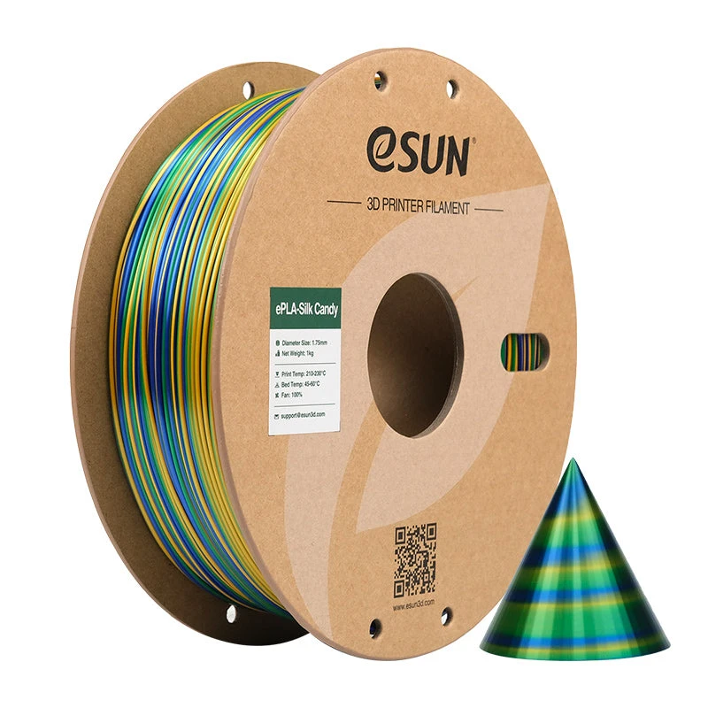 Le PLA eSilk est un PLA eSun modifié par l’ajout de matériaux à effet brillant qui lui donnent un aspect de surface soyeux. Cet effet a l’avantage de masquer les stratifications sur la pièce et donc d’obtenir un rendu visuel plus lisse. Il est par ailleurs similaire au PLA standard, avec de bonnes propriétés mécaniques, une grande résistance et toujours la même facilité d’impression. Il est respectueux de l’environnement et non toxique.