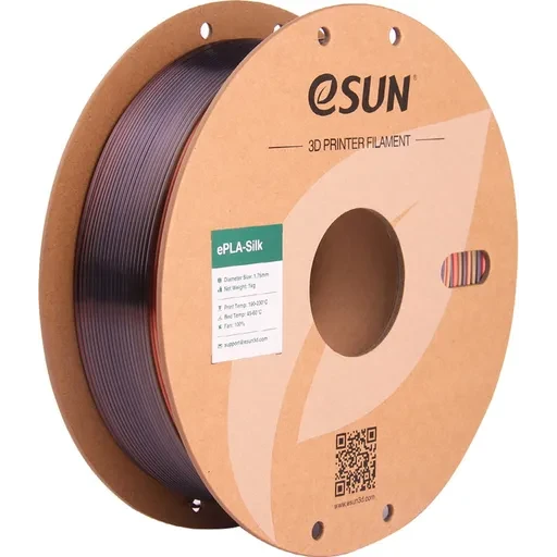 Le PLA eSilk est un PLA eSun modifié par l’ajout de matériaux à effet brillant qui lui donnent un aspect de surface sojaux . Cet effet a l’avantage de masquer les stratifications sur la pièce et donc d’obtenir un rendu visuel plus lisse . Il est par ailleurs similaire au standard PLA, avec de bonnes propriétés mécaniques, une grande résistance et toujours la même facilité d’impression . Il est respectueux de l’environnement et non toxique.