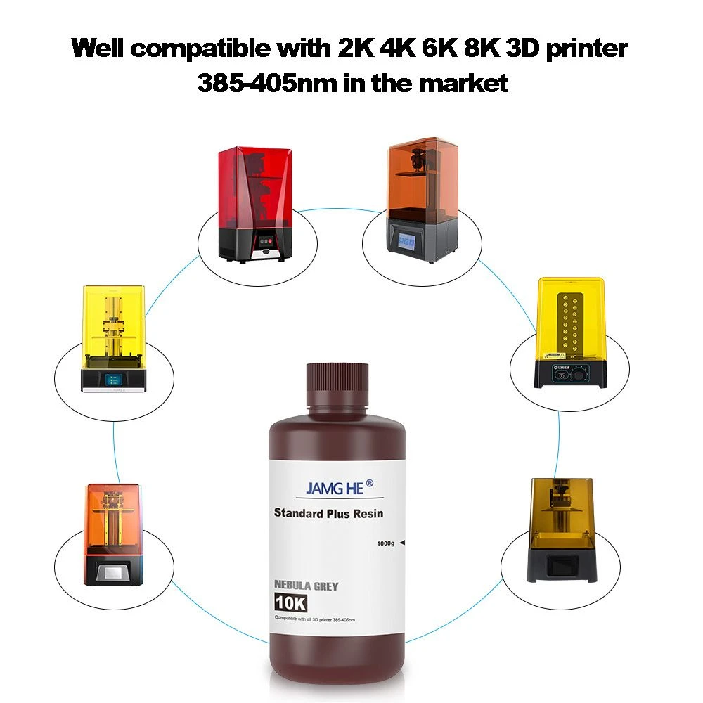 La résine Jamg He Standard plus, avec sa nouvelle technologie 10k, reproduit de façon extrêmement fine les détails pour un résultat final de haute précision et un fini de surface lisse. Elle a un très faible taux de rétrécissement, entre 0,3 et 0,6 % et offre un temps de post-traitement très court et donc une meilleure productivité. Sa faible odeur durant l’impression et sa fluidité la rende très agréable à utiliser.