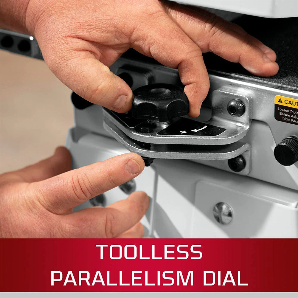 - Snipe is virtually eliminated thanks to the adjustable tension rollers that apply downward pressure to the workpiece