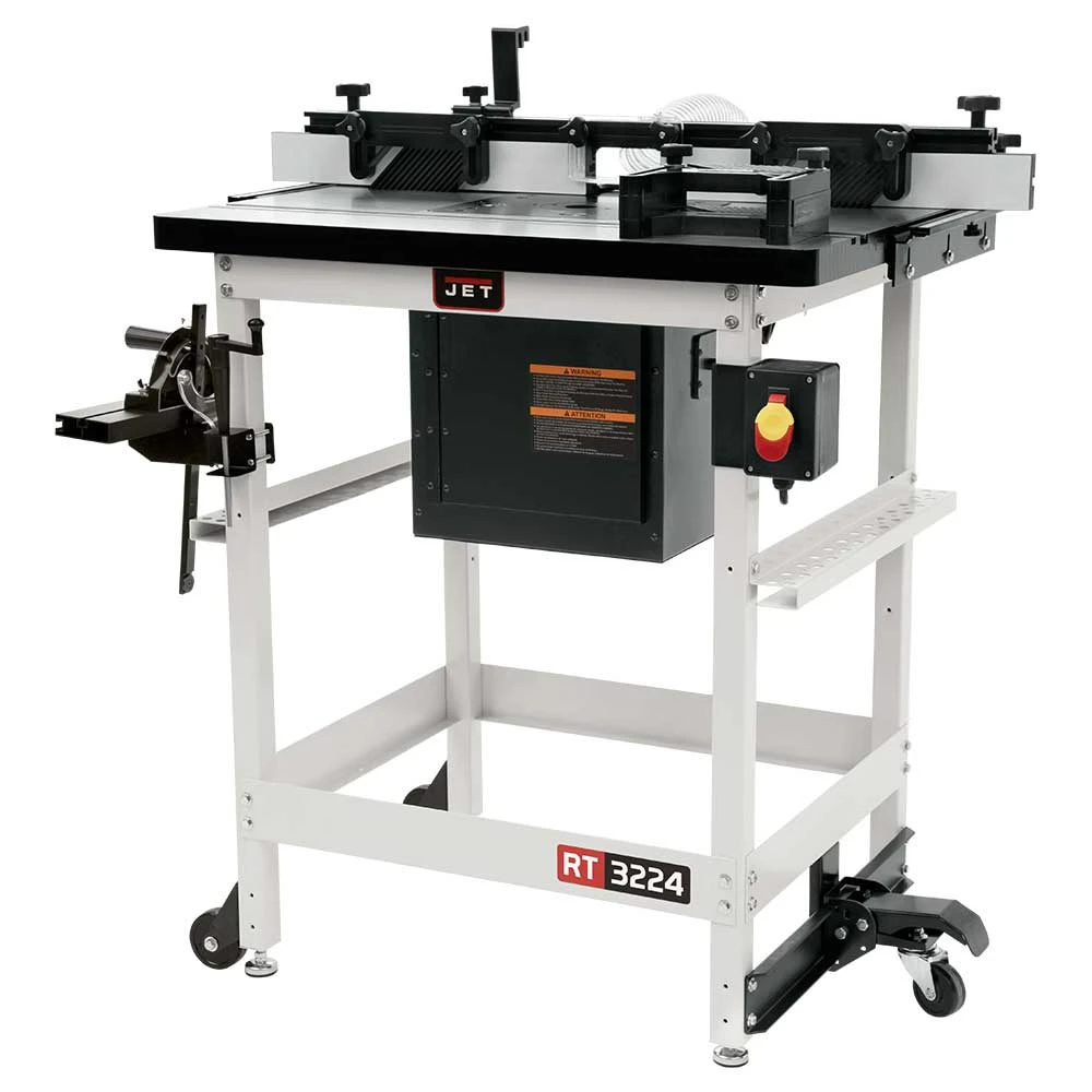 - Heavy-duty stand with router bit storage and an integrated mobile base