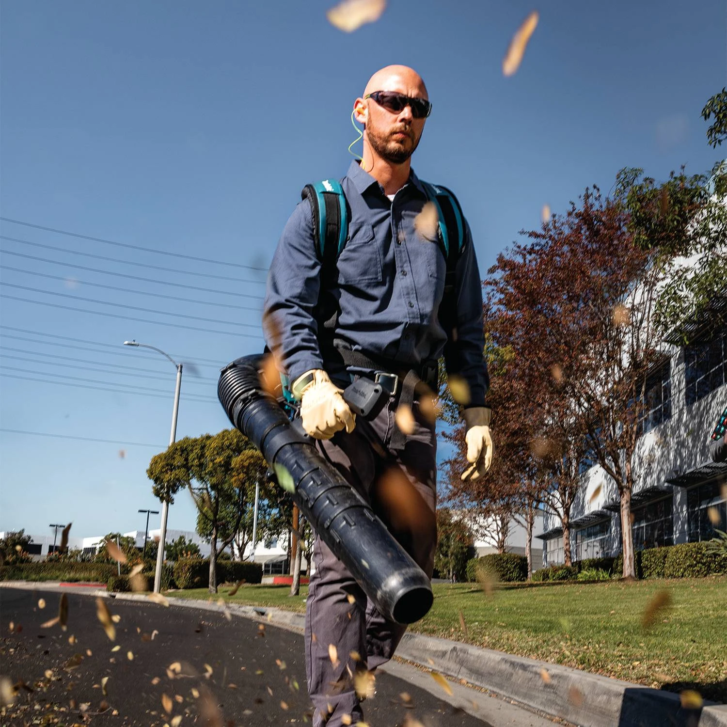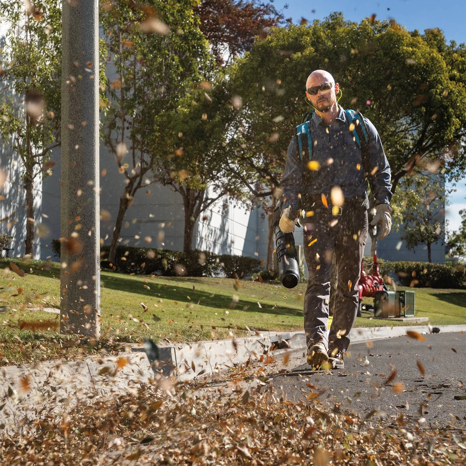 - Makita-built brushless motor delivers power of a 64cc gas backpack blower