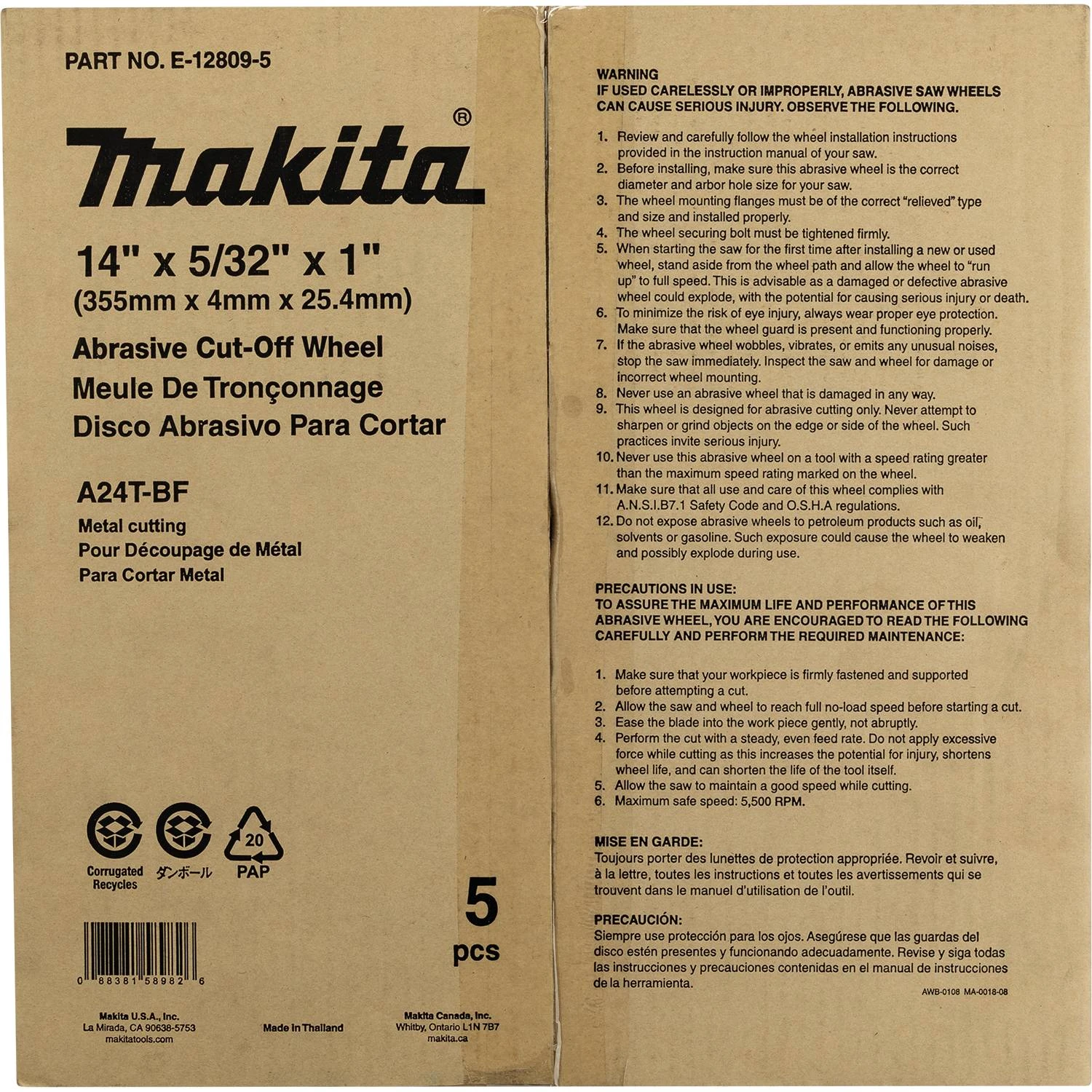 - 5 PK – 14″ x 5/32″ x 1″ Abrasive Cut?Off Wheel – E-12809-5