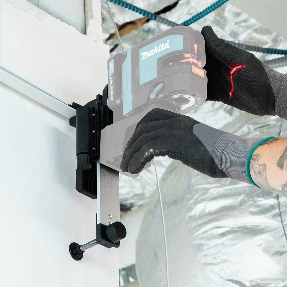 - Magnetic L-adapter on laser can be quickly and easily mounted to wall mount