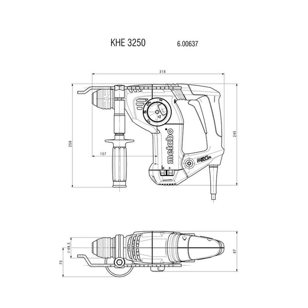 - Metabo VibraTech (MVT): integrated damping system and side handle to reduce vibration in order to protect the user.
