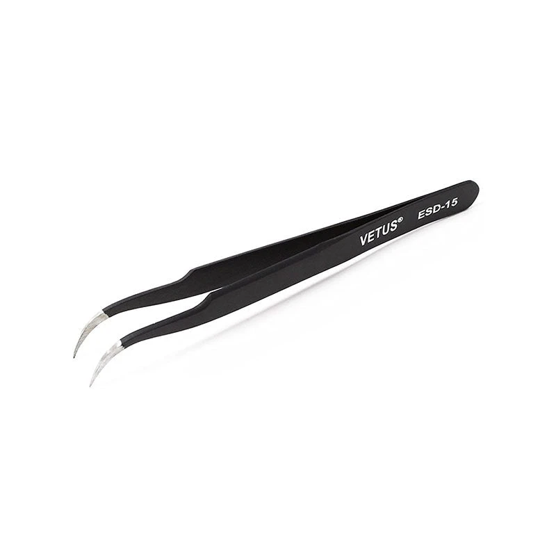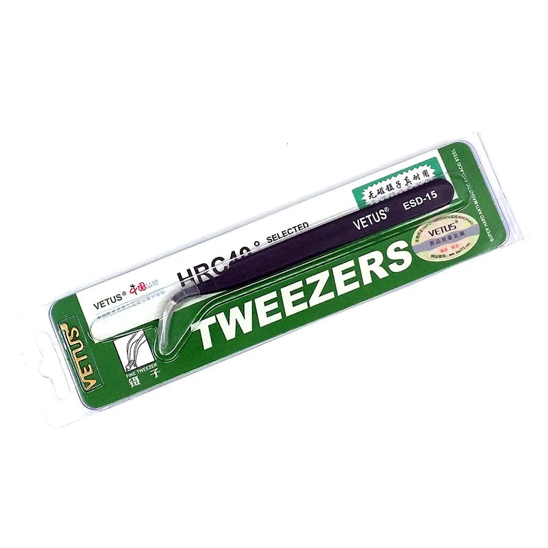 Utilisez ces pinces fines en acier inoxydable pour vos manipulation électroniques : sa dénomination ESD-15 (« electrostatic discharge ») vous assure que la charge électrostatique sera vidée au moment où vous manipulerez vos composants.