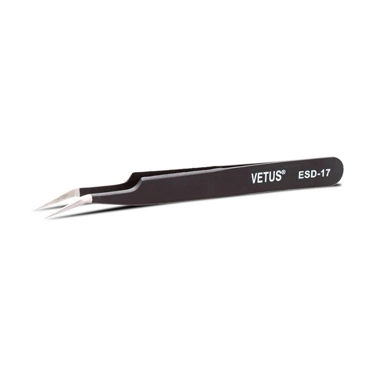 Utilisez ces pinces fines en acier inoxydable pour vos manipulation électroniques : sa dénomination ESD-17 (« electrostatic discharge ») vous assure que la charge électrostatique sera vidée au moment où vous manipulerez vos composants.
