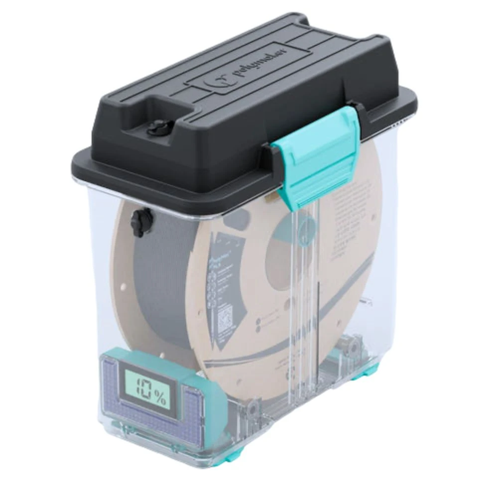 Le PolyDryer est composé d’une boîte hermétique et d’une base permettant d’effectuer le séchage. Vous pouvez donc utiliser une même base pour de nombreuses box. Vos filaments sont ainsi toujours prêts à être utilisés.
