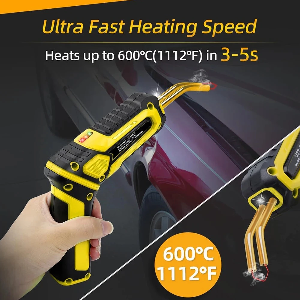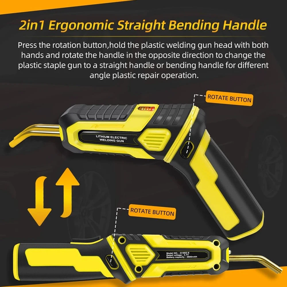 Fabriqué en ABS et en acier inoxydable de haute qualité, ce pistolet à souder est rechargeable et s’utilise donc sans fil, ce qui est très commode. Sa poignée tourne et peut se positionner droite ou incurvée afin de facilité votre utilisation en toutes conditions. Le changement se fait simplement, grâce à un bouton situé sur le côté du manche. Une lumière à l’avant permet de travailler confortablement même dans les lieux peu éclairés et vous offre une précision optimale.