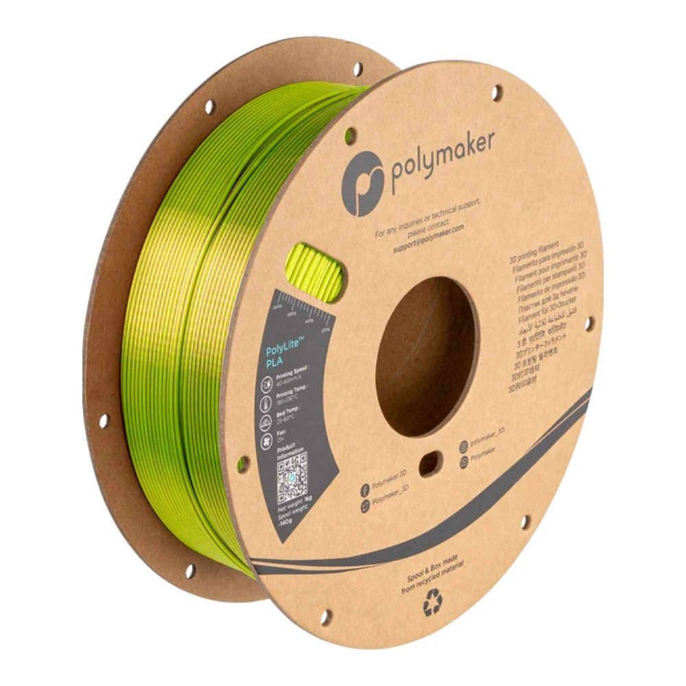 PolyLite™ PLA est un PLA de haute qualité conçu pour la fiabilité et la facilité d’impression. La gamme Dual Silk PLA présente un aspect soyeux et brillant très esthétique et réunit deux couleurs différentes en un seul filament pour produire un résultat aux reflets époustouflants et une pièce dont la couleur change en fonction de son orientation.