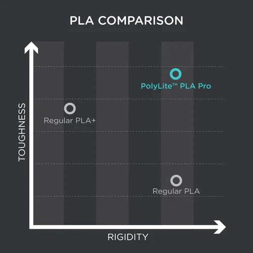 Le PolyLite™ PLA Pro est la combine de façon optimale les meilleures caractéristiques du Polylite™ PLA et du PolyMax™ PLA en permettant d’obtenir une haute résistance aux impacts et une excellente durabilité.