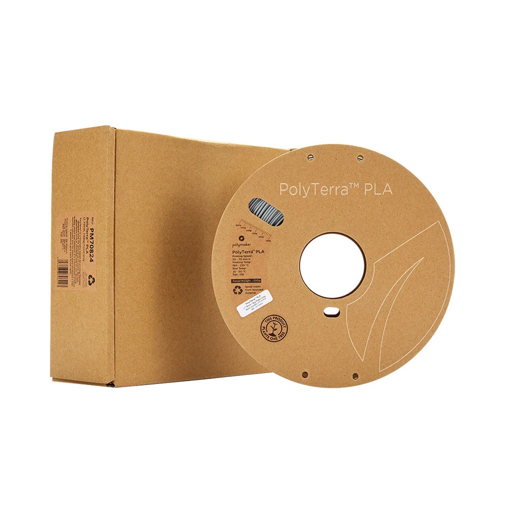 Il s’agit d’un matériau nouvellement développé par Polymaker appelé Fully Bio Compound (FBC) qui est un composé de bioplastique PLA et d’un biocomposite. Le PLA est un polymère biodégradable obtenu à partir de ressources naturelles telles que l’amidon extrait du maïs, de la betterave ou du blé. Ce matériau est l’un des plus utilisés dans l’impression 3D car il ne dégage pas de gaz nocifs et est très facile à imprimer. Si vous recherchez un filament PLA économique ou écologique, ou les deux, le filament PolyTerra™ PLA est certainement fait pour vous.