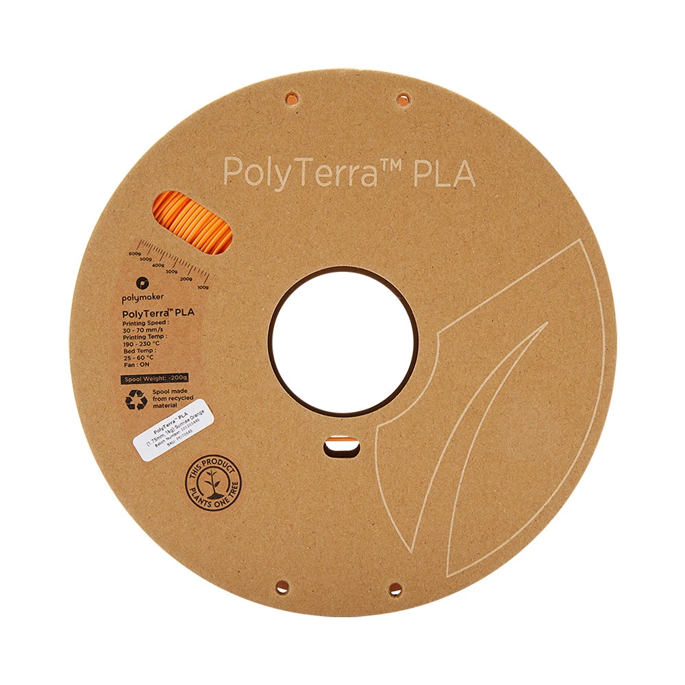 Il s’agit d’un matériau nouvellement développé par Polymaker appelé Fully Bio Compound (FBC) qui est un composé de bioplastique PLA et d’un biocomposite. Le PLA est un polymère biodégradable obtenu à partir de ressources naturelles telles que l’amidon extrait du maïs, de la betterave ou du blé. Ce matériau est l’un des plus utilisés dans l’impression 3D car il ne dégage pas de gaz nocifs et est très facile à imprimer. Si vous recherchez un filament PLA économique ou écologique, ou les deux, le filament PolyTerra™ PLA est certainement fait pour vous.