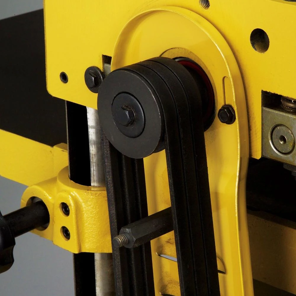 - Serrated steel infeed roller and smooth steel outfeed roller allow for 1/8″ maximum depth of cut and trouble
