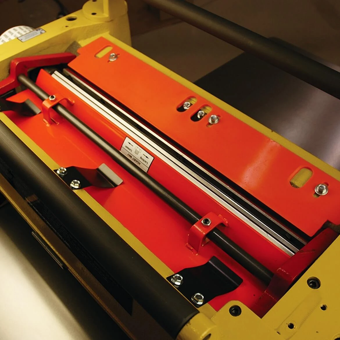 - Feed rollers and cutterhead supported by full cast iron head assembly for rigidity