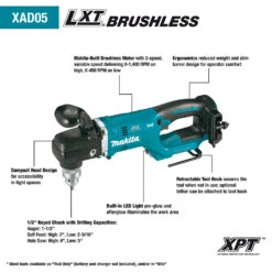 Makita XAD05Z 18V LXT BL 1/2″ Li-Ion Brushless Cordless Angle Drill – Bare Tool