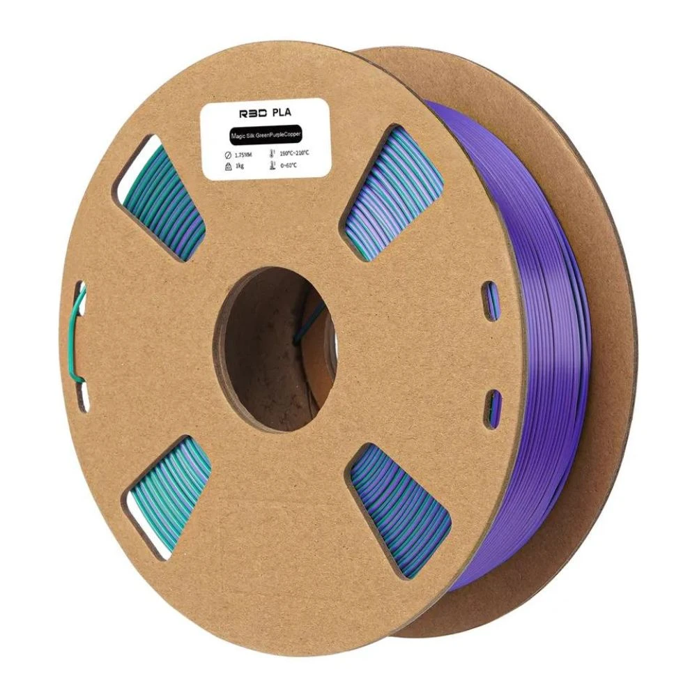 Simple à utiliser, ce pur PLA avec une forte brillance offre une bonne adhésion entre les couches. Doté d’un point de fusion peu élevé, il vous assure également une impression sans bulles, sans obstruction de la buse, et un rendu net. Grâce à ses trois couleurs assemblées en un seul filament, vos pièces auront de magnifiques reflets changeants en fonction de l’inclinaison de la pièce et de la lumière.