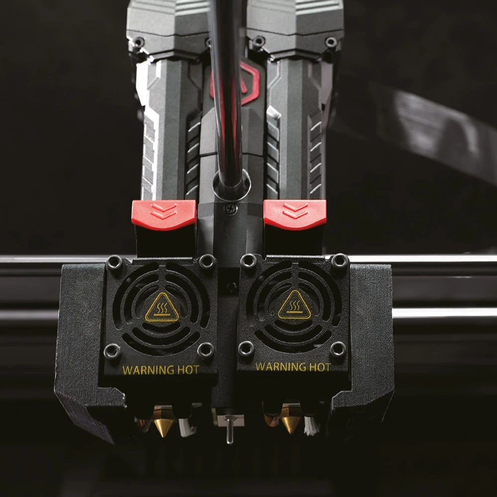 La série Pro3 est équipée d’une extrudeuse modulaire indépendante avec un système de double extrusion. Cela permet à la série Pro3 d’imprimer en utilisant une variété de filaments, de réduire le colmatage et de permettre un démontage et un remplacement pratiques des composants. L’extrémité chaude de la série Pro3 est facile à retirer, ce qui peut se faire sans outils, facilitant ainsi le remplacement et la maintenance de l’extrémité chaude. Les utilisateurs peuvent également retirer facilement le couvercle avant de l’extrudeuse pour localiser avec précision les obstacles courants à l’impression, tels que les bourrages de filaments.
