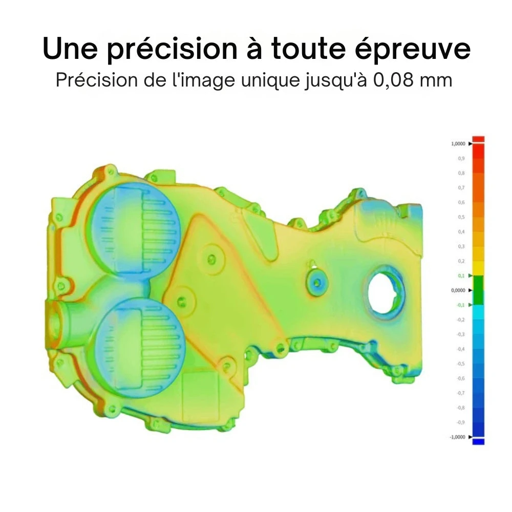 Grâce à son unité de mesure inertielle (IMU) à 9 axes, il assure un tracking fluide et minimise les erreurs de scan liées aux mouvements ou vibrations. La fonction de zoom optique et la caméra HD RGB permettent de capturer des surfaces complexes et colorées avec un réalisme impressionnant, tandis que le mode de suivi des marqueurs garantit une précision optimale. Compatible avec les appareils mobiles, il se prête à une multitude d’applications en impression 3D, animation et conception de produits.