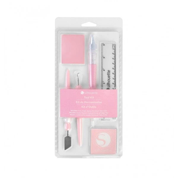 Tous les outils nécessaires avec votre machine Silhouette dans un kit ! Cet ensemble d’outils est livré avec un crochet, une raclette, une spatule, un pick-me-Up®, une règle, et une chiffonnette microfibre.