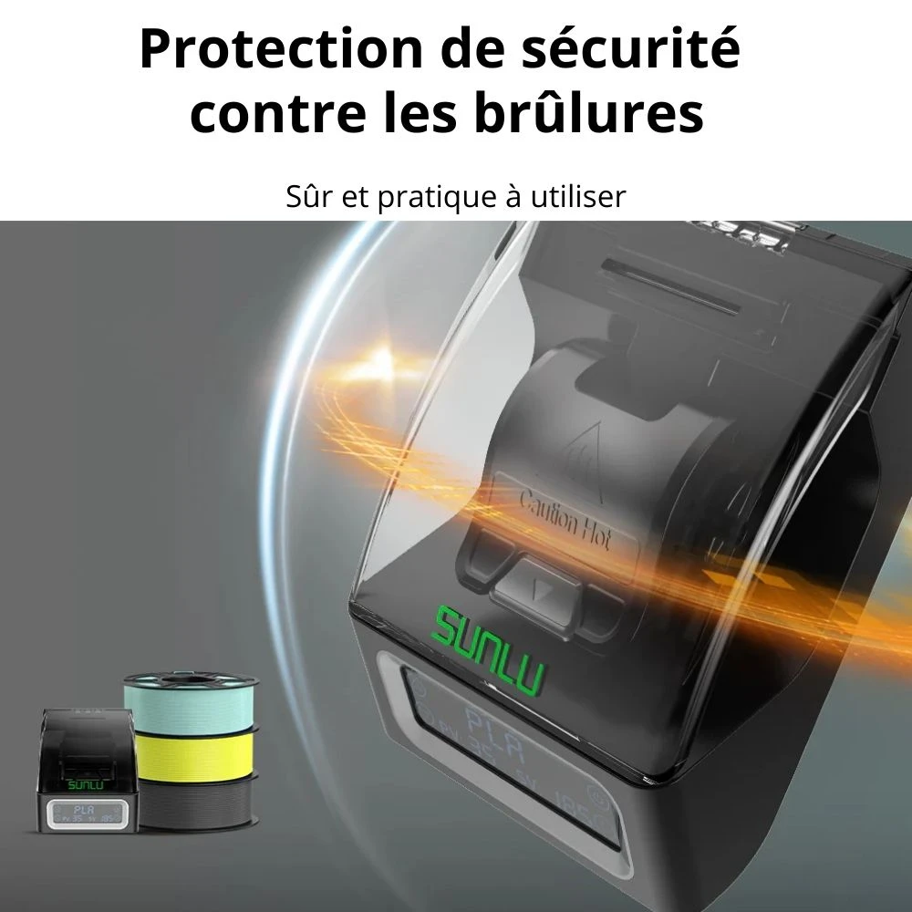 Le connecteur de filament Sunlu FC01 est conçu pour rester sûr à utiliser. Avec un contrôle avancé de la température et des matériaux isolants de haute qualité, l’extérieur ne dépasse pas les 50 à 100°C pendant la fusion. Vous pouvez donc l’utiliser en toute tranquillité, sans vous inquiéter de la chaleur.