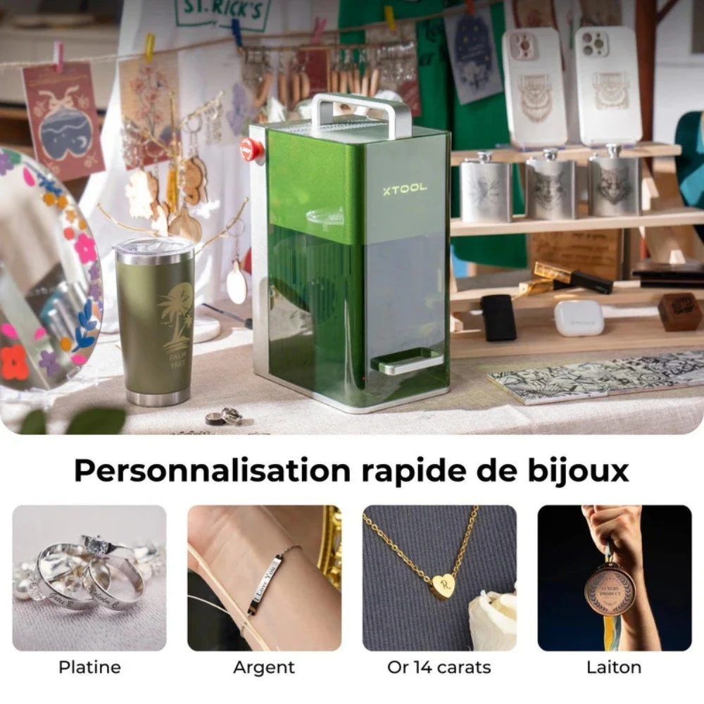 Le graveur laser xTool F1 est un outil de personnalisation ultra-rapide et polyvalent. Grâce à son système de galvanomètre industriel, il permet des gravures précises et détaillées sur une variété de matériaux, tels que le bois, le métal, le verre et le cuir.